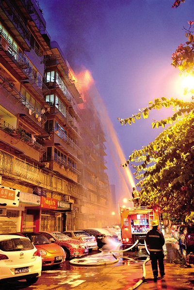 凌晨4时58分左右,消防官兵在扑救大火。刘胜春摄