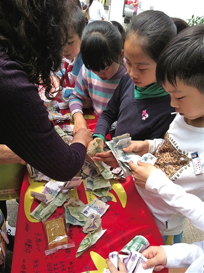 蒲鞋市小学的孩子们细细清点义卖收入。图片由学校提供
