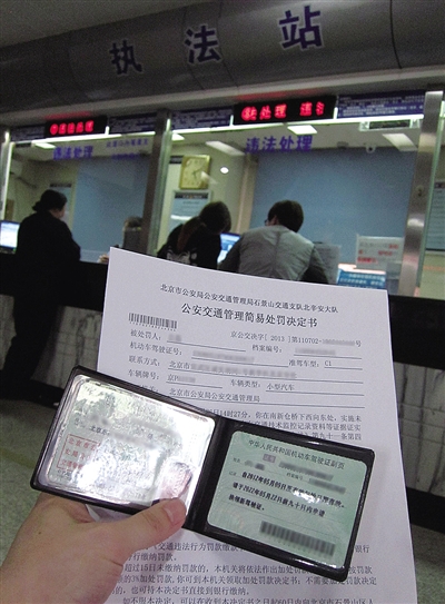 5月6日,一位驾驶员在交通执法站处理违章后展示处罚决定书。当日,有媒体报道公安部允许“1个驾驶本最多为3辆车处理违法行为”,该消息在互联网上迅速引发大量转载,对此,公安部交管局有关负责人表示,该说法系个别媒体误读。这位负责人强调,禁止任何人出卖或购买交通违法记分,对“买分卖分”行为发现一起查处一起。公安部交管局正在建立健全查处“买分卖