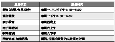 记者在服务中心义工登记表上看到,从正式成立到现在已经有94位有一技之长的义工在这里登记,包括钢琴教师、律师、心理咨询师、外教、理发师、教师、医生等。目前该服务中心对外公开的服务项目时间表显示,该中心一周六天,每天提供不同的免费服务(详见表格)。