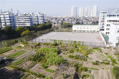 读者董女士致电新闻热线88817110反映:我儿子现就读于广场路小学上陡门校区,学校没有运动场,没有食堂。孩子在校长期吃外送的盒饭已经生厌,中午回家吃饭又担心交通安全。我们家长去接,每天来回奔波也吃不消。但是在学校南面却有一块空地闲置多年,周边居民在里面种菜种瓜,养鸭养鸡,苍蝇飞舞,前段时间禽流感我们家长亦是很担心,为什么学校不把这块地拿来建设运动场和食堂,解决家长的后顾之忧?