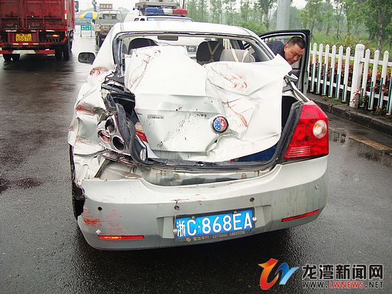 龙湾新闻网讯 2013年5月9日13时25分,在G15高速公路往福建方向1747K处(温州东收费站处)发生一起货车碰撞轿车事故。监控中,事故货车因为雨天未减速行驶,在高速公路上行驶时,因为路面有积水路滑,一脚刹车使车子玩起了漂移,车子打转后与前方正常行驶的一辆轿车发生追尾,所幸事故没有造成人员伤亡,高速交警也在第一时间到达现场进行处理。