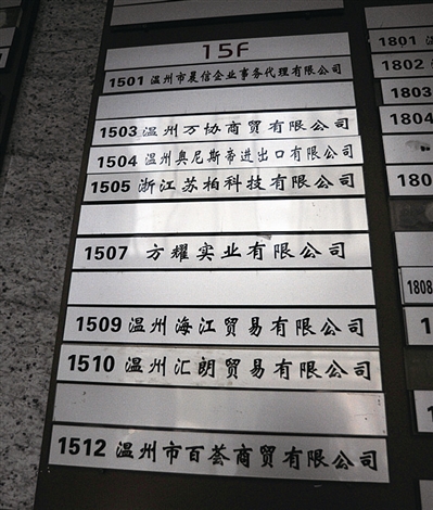 今天上午,记者前往温州市车站大道2号华盟广场15楼的倪日涛任法定代表人的企业——浙江中源实业投资有限公司采访,电梯口、门口没看到标有中源企业名称的牌子。该大楼知情人士透露,早在一年前“中源”就搬走,不知去向。今年年初,曾有一大队人马曾前来调查。