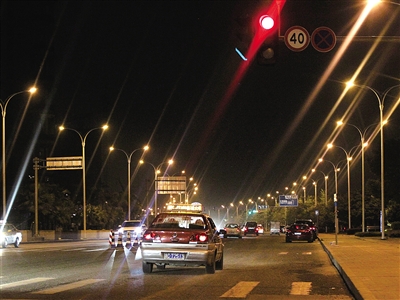 在学院路与前庄路交叉路口,没有监控,闯红灯现象更加严重,不仅是出租车,私家车也不少,半个小时里,几乎每一个红灯都有车辆闯。而这些闯红灯的车辆,往往会开到斑马线前,突然加速闯过。而出租车,无论是闯红灯,还是直接停在路口中间上下客,基本无视红绿灯。在记者观察的这段时间里,数次有闯红灯的车子险些与转弯的车辆相撞,急刹车的声音打破黑夜宁静。