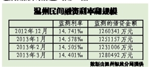 温州民间借贷利率创两年来新低 3月为14.401‰