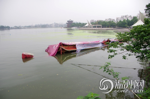 温州网5月15日讯(记者王建平) 5月14日上午10点钟左右,停放于会昌河龙舟基地的目前温州唯一的一艘水上台阁突然进水沉没。