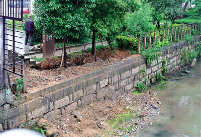 日前,过境湾滨水公园靠近锦瓯桥段,绿化带中的土被倾倒入河道。还有路人在公园里大小便。