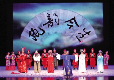 去年底,方汝将瓯韵今生表演艺术专场成功举行,图为方汝将与剧组人员向观众谢幕。本报资料照片赵用摄