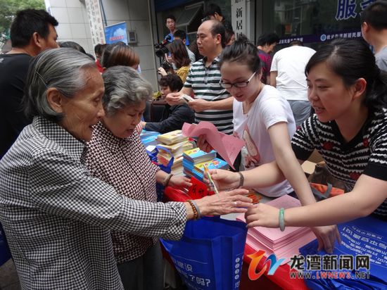 现场工作人员向群众分发《全民科学生活方式》、《防震减灾常识》、《图说邪教》、《建设“平安龙湾”致市民公开信》等宣传资料2000多份,还分发了蔬菜种子、避孕药品、环保桌面等小礼品。现场举行《抵制邪教、倡导文明》图片展览,吸引了过路群众驻足观看。来自龙湾区医院的医务工作者还为过往群众开展量血压、检查身体等为民服务,接受服务人数达80余人。