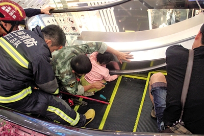 本报讯(陆达王程)昨天17点57分,消防永宁中队接到报警,在市区万达广场二楼到三楼电梯口处,有一名小女孩手指被卡在电梯交接处,伤情不明。