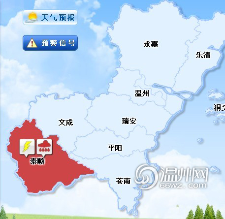 温州网记者从温州气象网了解到,今天温州气象部门发布了泰顺暴雨红色预警、雷电黄色预警。