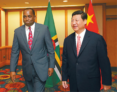 在会见斯凯里特时,习近平指出,多米尼克是中国的好朋友、好伙伴,两国在民生等领域开展了有益合作。双方要继续开展农业、医疗等领域技术转让和经验共享,做实做细经济技术合作,探索开发清洁能源,共同应对气候变化,扩大人员往来,加强人力资源培训合作。