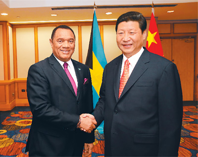在会见克里斯蒂时,习近平表示,巴哈马是全球重要离岸金融中心和海运中心,旅游业发达,是中国在加勒比地区重要经贸合作伙伴,两国合作潜力很大。双方要加强沟通,深化经贸、旅游等领域务实合作,促进教育、文化交流和民间交往,将两国友好合作关系提升到新水平。