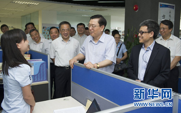 在禾信分析仪器、京信通信、华星光电技术公司和三诺集团,张德江关切地询问企业实施创新驱动发展战略情况。他说,要依法保护知识产权,激发企业创新活力,提高核心竞争力。他还勉励企业青年员工学有所用、业有所成,为实现中国梦贡献自己的青春和力量。