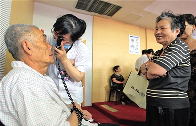 附一医的眼科专家为市民开展义诊活动,并特别对糖尿病引起的眼疾提出养护方案。陈翔摄
