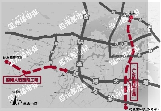温州网讯瓯海区住房和城乡建设局昨天透露,广化路南延线、瓯海大道西延线等2条城市主干道计划于本月底开工建设,道路总长10.6公里,项目总投资41.67亿元,均采用投资、施工一体化的BT模式建设。
