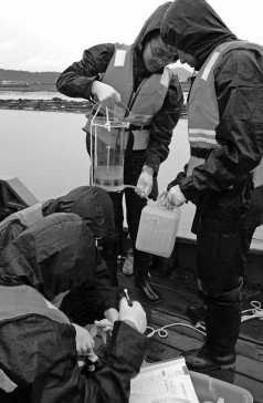 昨天下午,乐清市海洋与渔业局、省海洋水产养殖研究所工作人员,在检测中共采集5个样品,包括2份水样、2份鱼样、1份蟹样。2份水样分别采集自乐清市外塘海水养殖专业合作社的网箱养殖区、距离东山码头约2海里处,2份鱼样也采集自该养殖区,分别是鲈鱼、黑鲷;1份蟹样采集自乐清市小横床岛的养殖户处。