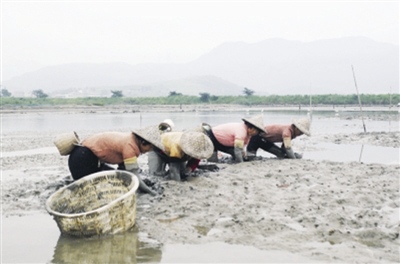 乐清海域盛产温州市民喜爱的缢蛏、泥蚶、牡蛎、海瓜子等海产品。郑剑佩摄