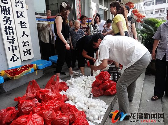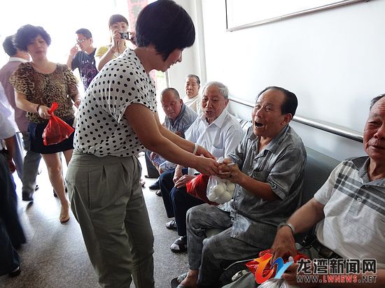 在龙湾区综合福利院,义工们将粽子和鸡蛋一一送到入住的老人们手中,亲切地与老人们交谈,详细询问老人们的生活和身体状况,叮嘱他们一定要注意保重身体,并衷心祝愿老人们节日快乐、健康长寿,过一个幸福、安康的晚年,真正让这些孤寡老人感受到了社会大家庭的温暖。