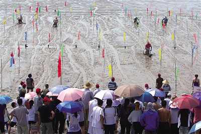 温州日报讯(柯露霞)6月19日,龙湾东海大堤迎来了2013年浙江省全民健身浙南片区活动暨温州“泥巴节”第四届滩涂趣味运动会。来自浙南、浙西、浙中的61支队600多名参赛队员在泥中欢乐竞技。温州泥巴节龙湾区滩涂趣味运动会从2010年开始举办,现已成功举办了3届。