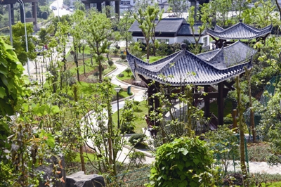 位于龙湾状元街道的石坦山公园建设完毕,以崭新的面貌迎客。图为公园入口处的长廊。潘祝平摄