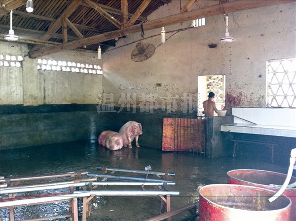 杨东锋说,这是永嘉县历史最悠久的一家屠宰场,至今仍采取原始落后的手工宰杀方式,由于条件所限,噪音和卫生条件难以达标。