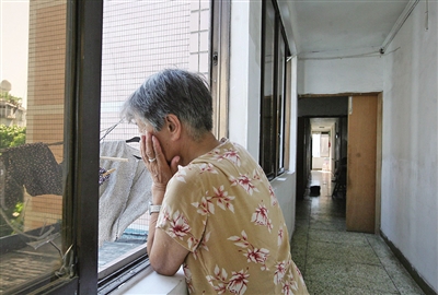 洪殿长寿老人公寓里,一位老人在走廊上发呆。翁卿仑摄