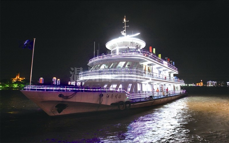 作为我市第一艘专业观光船,“江南明珠”于2008年9月投入运营,这艘游轮长45米,宽10米,高16米,共三层。首次航行后的“江南明珠”曾经红火过一段时间,后来由于各种原因陷入困境,最终暂停营业。