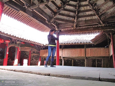 温州的古戏台大多位于乡野的宗祠庙宇里面,这对一个年轻女孩无疑是一个挑战。“并非全程都是我一个人去,有时候县(市、区)文物馆的同志会陪同,周末的时候,我则会拉上老公一道,当然,更多的时候是单枪匹马。”黄慈帖说。