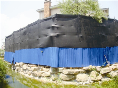 该别墅外围用挡板和防护网遮得严严实实,里面在开挖地下室。黄寅玮摄