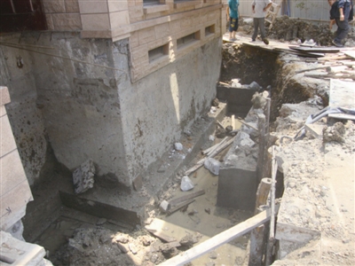 昨日上午,记者看到C32别墅外面一圈用挡板和防护网遮得严严实实,这在一般人看来,只是一幢正在装修的新房。但在这挡板内,别墅底下的环三面已经挖出了一条长20多米,宽1.5到3米,深3米的沟渠,旁边平地上堆放着一些需要运走的建筑废土。据记者了解,户主还把开挖的地下室底部浇上了水泥,准备在地下室做透气窗,方便地下室的采光和通风。