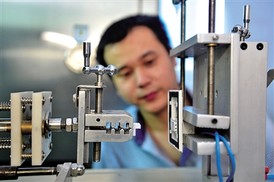 严格的检测手段保证了产品的安全性。图为王邦电器有限公司的技术人员在对开关进行寿命测试。杨冰杰摄