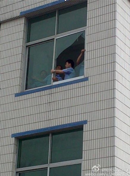 3、【强风吹碎警局玻璃】@短发女人的天真:颱風啊。把分局的窗戶都給吹裂了。樓下的警車遭殃了。