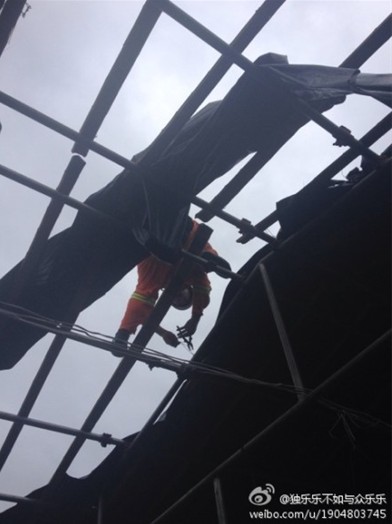 2、【广告牌掉落轿车遭殃】@温州如果爱--小许:台风之际强烈要求拆除户外广告减低危险。