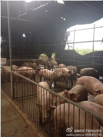5、【苏力太威武吓坏外来小猪】@独乐乐不如与众乐乐:台风苏力来临,在苍南龙港,苍南消防官兵们正在给风雨飘摇的300多平方猪棚加固,这些猪都是意大利品种,买过来3000多一条。企业今年刚刚起步,投资了200多万做养殖业,没想到就遇到苏力。因为台风惊吓,早受了惊吓的猪猪跑出去10多条,后来村民和消防一起帮忙去找,早上全部找了回来,消防再对猪棚进行加固。