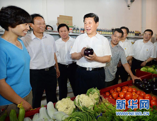 这是习近平在正定县塔元庄村综合超市内同前来购物的群众亲切交流。新华社记者李涛摄