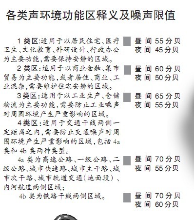 “明年元旦开始遵循新的噪声限值,声环境管理控制将更严格。”市环保局相关负责人表示,不少区域的管理标准有所提升,新建项目的“声门槛”也随之提高,已有项目可能要按新标准进行整改,如控制规模、加强隔音等;同时,对机动车噪声、建筑施工噪声、个人装修噪声等实行综合管理,尤其要在居住区营造一个安静的环境。