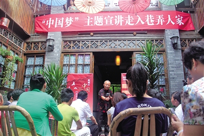 道坦里,平实逗趣的“中国梦”宣讲,让市民感觉很亲切。黄宇慧黄西堤摄