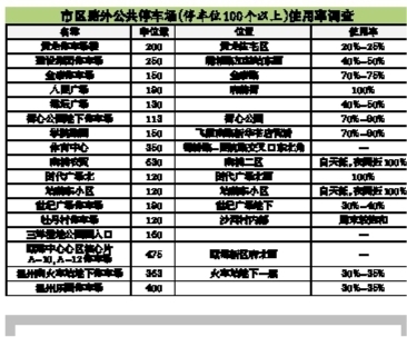据统计,市区路外公共停车场共有44个,向社会开放停车位6508个。但这些停车场中仅2个白天停车100%饱和,2个夜间停车接近饱和,大部分的日常停车量仅50%左右。