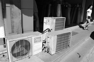 昨天下午,记者在广汇商厦楼下看到,沿街五六家皮革店的空调室外机已经被拆除,部分店主请来空调安装工,准备进行移装。辉达皮革店主黄女士说,她和旁边店铺总共三台空调外机,之前一个装在地上,另两个装在上面。按照城管的要求,空调外机要离地2.5米,如此一来根本装不下。“我们请了好几个空调安装工来看,他们都说不好装。这么热的天,外机被拆了之后,办公室里就像火炉。”