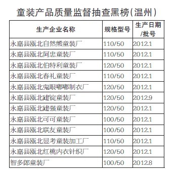 温州12家童装企业上黑榜