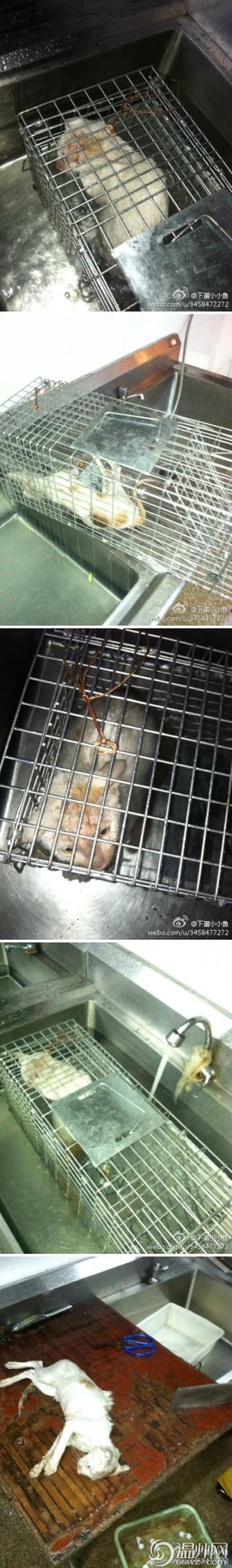 @“下蛋小小鱼”:“瓯海区梧田妙鲜阁酒店厨子,为口腹之欲,将猫咪关在笼子里放进水池活活淹死。”