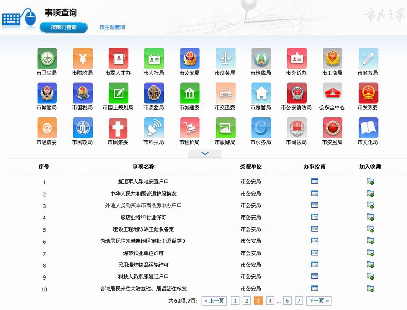 武汉市民之家官方网站以图标清楚地列出了各个部门具体的办事事项以及详细的办事指南等。