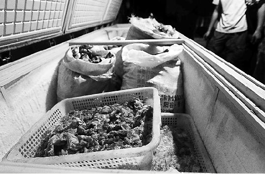 编织袋内的肉制品有一股难闻的刺鼻异味。