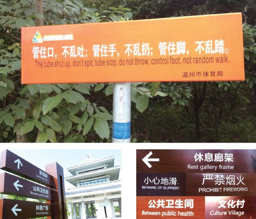 管住口译成“管道闭嘴” 大罗山上中式英语糗大了