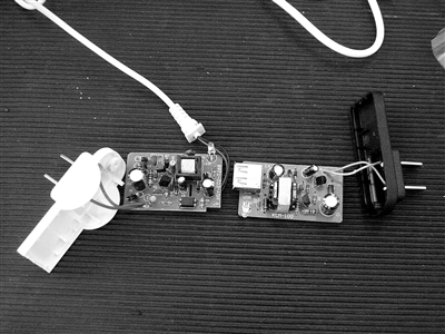这两个充电器拆解后,电路的工艺比较粗糙。林明摄
