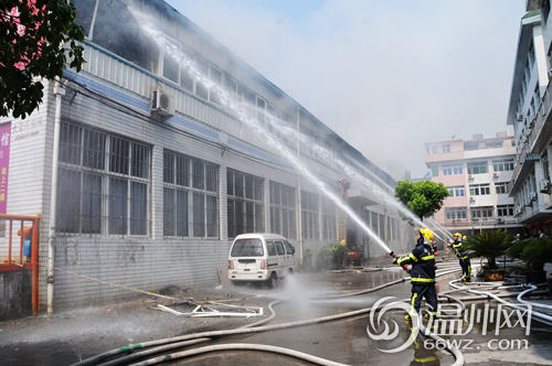温州网7月25日讯(通讯员 余根铃 陈博泼)今天上午8点40分左右,位于温州龙湾区城北村农贸市场内二楼的一个家具市场发生火灾,接到报警后温州市公安消防局调集5个消防中队,一个专职消防队共13辆消防车抵达现场救援。