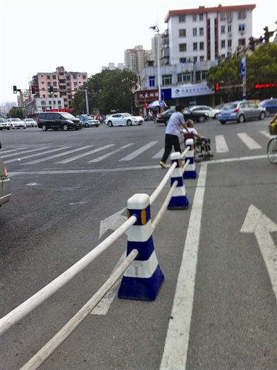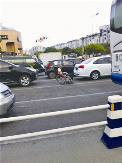 我看见老人的时候,路口已经是绿灯,那么多车子正在开,他却直直地横过来,看着真是危险,所以我就把车停在路口,下去帮他一把。那个老人看起来七八十岁了,腿脚不方便。我问他“老师伯去哪里”,他好像没听到,我就先把他推到对面人行道上,又问了一遍。老人用手指了指对面,说就一点点路,让我只管回去。我看他人比较“精灵”,就提醒他等绿灯亮了再走,自己就回到了车上。车上的人可能都看到了,说“这个司机人真好”。