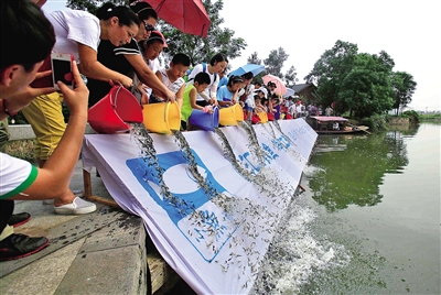 6月30日,温州“小鱼治水”进行了首次增殖放流活动,10万尾鳙鱼鱼苗担负着“清道夫”的使命踏上治水之旅。资料照片刘伟摄