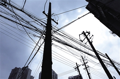 横七竖八分布在空中的管线要统一埋入地下。资料照片赵用摄